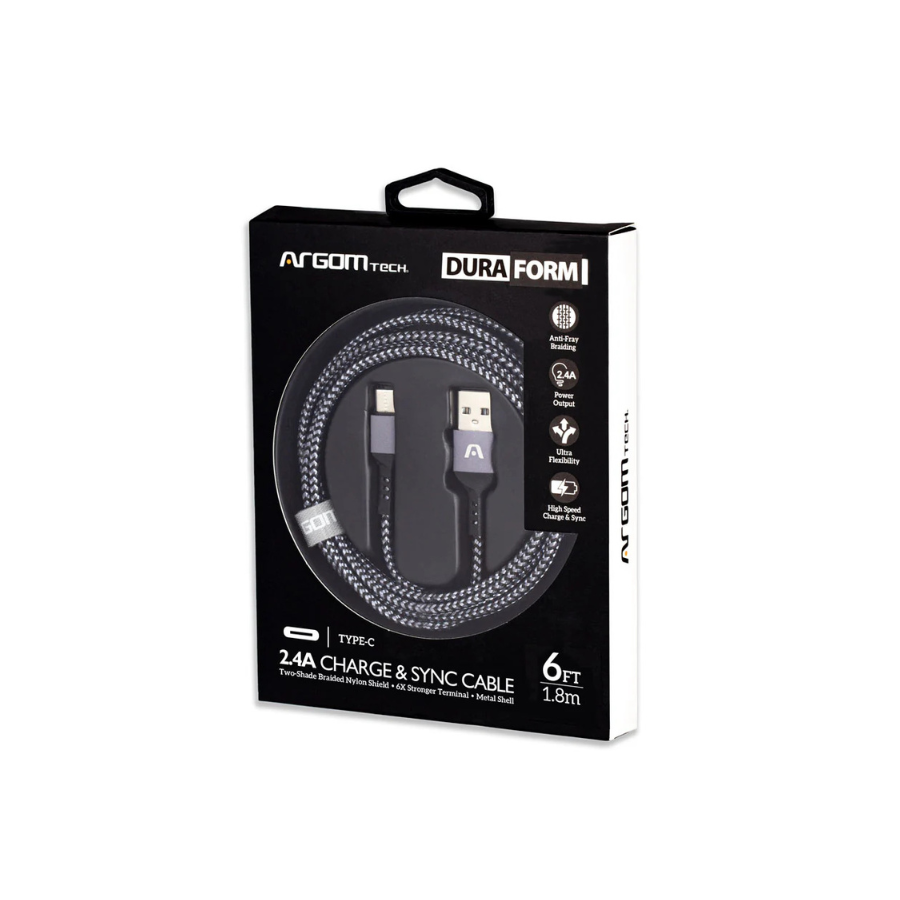 Cable Trenzado de Nailon Tipo C a USB 2.0 1,8 m - Negro ARGOMTECH ARG-CB-0025BK