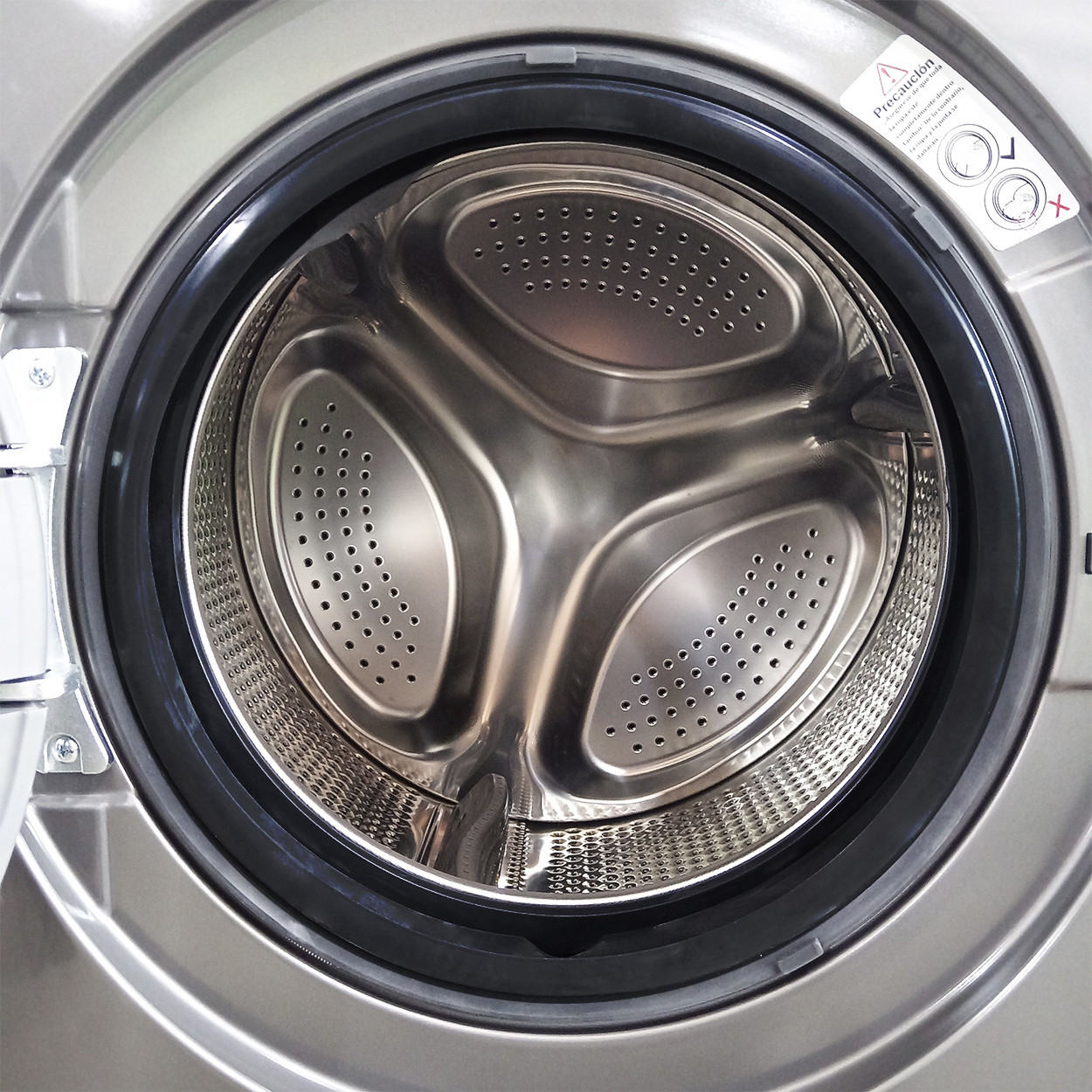 | HITECH Lavadora de 12Kg, Carga Frontal, Ciclo de Lavado de Tres, 16 Programas de Lavado, Tambor de Acero Inoxidable, Color Gris. |